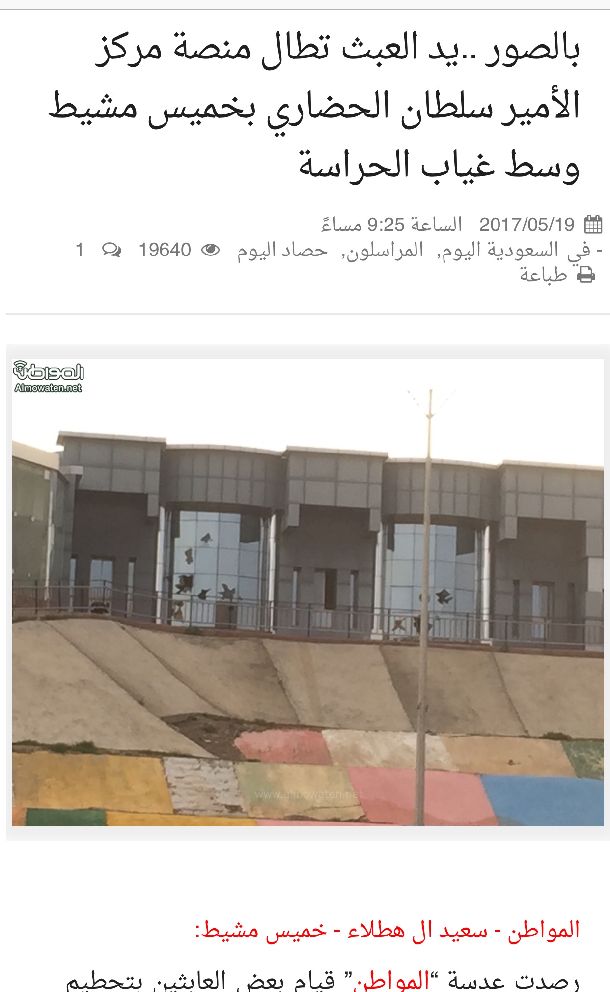 وقد نشرت “المواطن” في وقت سابق مشاهد من العبث بالمنصة الأمامية والخلفية بتاريخ ٢٣ / ٨ / ١٤٣٨ الموافق 19 / 5 / 2017.