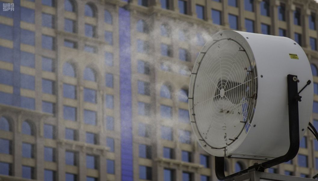 وتعمل الرئاسة على تطوير تلك الخدمات واستحداث أفكار جديدة وتهيئة جميع السبل التي تهدف لراحتهم في المسجد الحرام والمسجد النبوي؛ بتوجيهات مستمرة من الرئيس العام الشيخ الدكتور عبدالرحمن بن عبدالعزيز السديس، ومعالي نائبه لشؤون المسجد الحرام الشيخ الدكتور محمد بن ناصر الخزيم، ومن هذه الخدمات التي تقدم للزوار والمعتمرين تلطيف الهواء في ساحات المسجد الحرام والمسجد النبوي، وذلك باستخدام تكنولوجيا (تبريد الهواء بالرذاذ)، من خلال امتصاص الطاقة الحرارية من الهواء الخارجي؛ لخفض درجة حرارته.