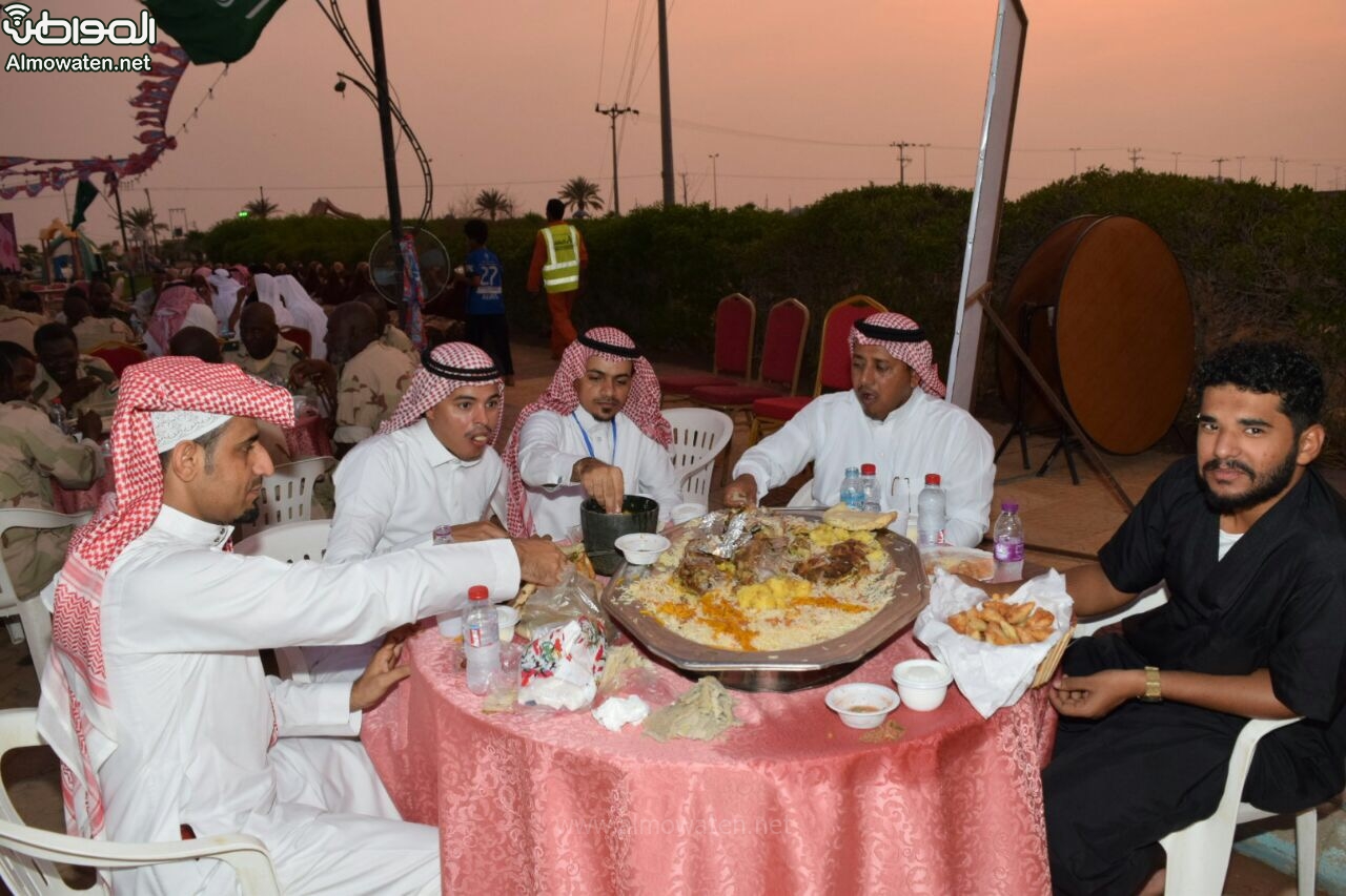 على شرف قادة وأبطال الحد الجنوبي وقوات التحالف العربي المرابطة بمنطقة جازان.. أقام مركز النشاط الاجتماعي بقرية الركوبة التابع للجنة التنمية الاجتماعية بصامطة سفرة الإفطار الرمضانية في عامها الثالث، بحضور عدد من ضباط وأفراد القوات المسلحة السعودية وإخوانهم في القوات المسلحة الإماراتية والسودانية المرابطين، يتقدمهم أهالي قرية الركوبة وعدد من الإعلاميين.