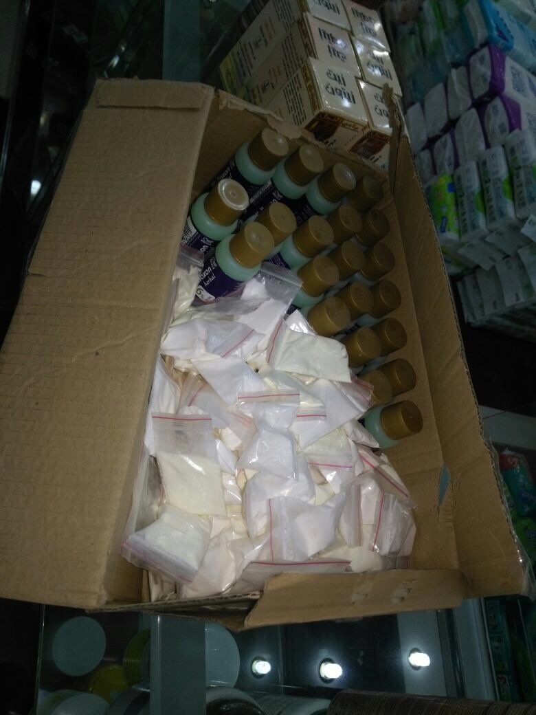 كما صادرت أكسجين شعر ١٠٠٠ مل مجهول المصدر، وتم العثور على كريم منتهي الصلاحية وزيت اللوز منتهي الصلاحية وغسول اليد منتهي الصلاحية.