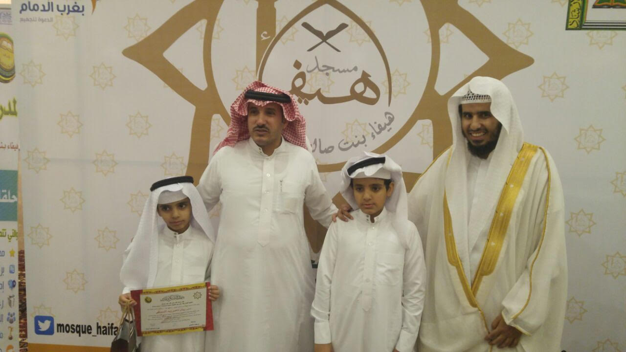 كرمت حلقات تحفيظ القرآن الكريم بمسجد هيفاء بنت صالح الصقير بحي الفرسان بالدمام 57 طالبًا، وذلك في ختام الحلقات لهذا العام تحت إشراف جمعية تحفيظ القرآن الكريم بالمنطقة الشرقية، وبحضور الشيخ باسل بن مضحي العنزي عضو الدعوة والإرشاد بوزارة الشؤون الإسلامية، وبالشراكة مع المكتب التعاوني بغرب الدمام “نور”.