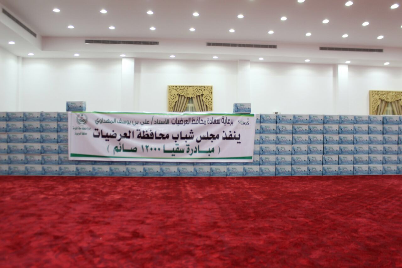 بعد ذلك دشنَّ المهداوي مع مجلس شباب محافظة العرضيات مبادرة سقيا 12000 صائم شارك فيها الجميع تحت إشراف فريق عمل من المجلس.