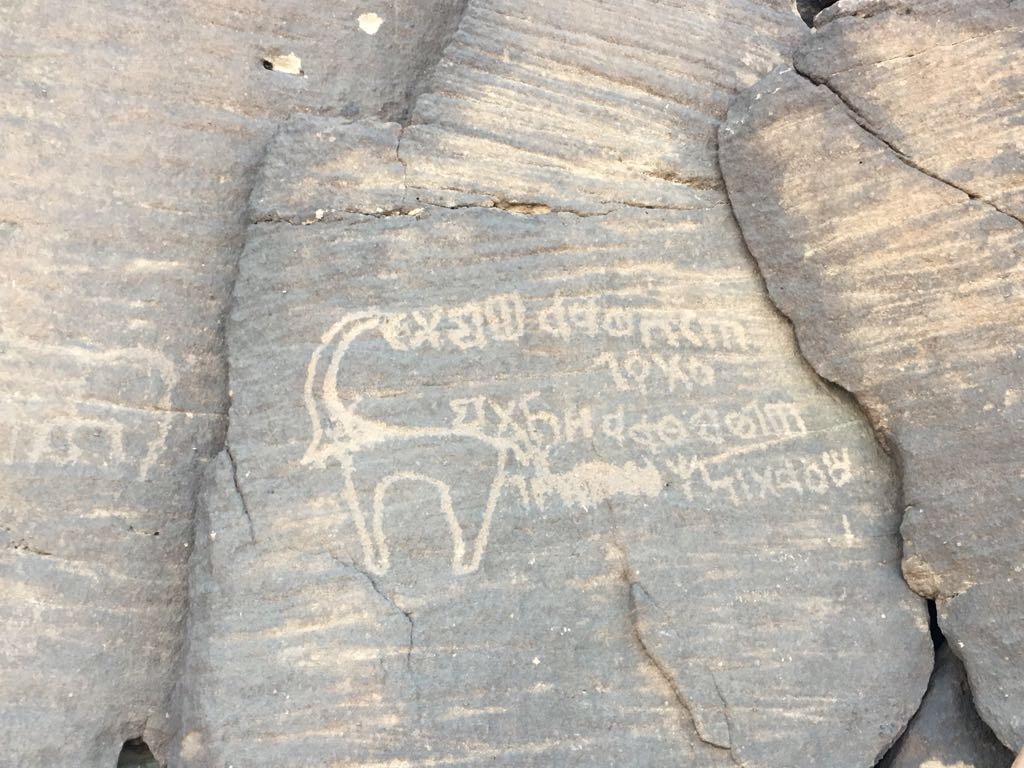 وتعود هذا النقوش إلى كتابات بلغات مختلفة وصور لحيوانات متنوعة ويتضح أنها قديمة جداً وقد جذبته لتوثيقها وتزويد “المواطن” بها.