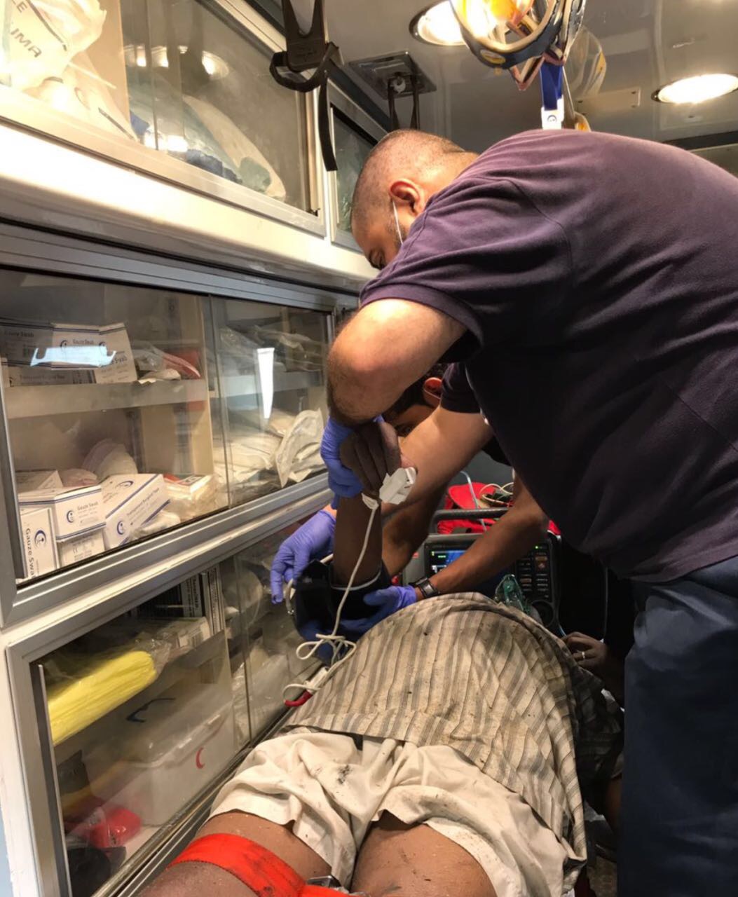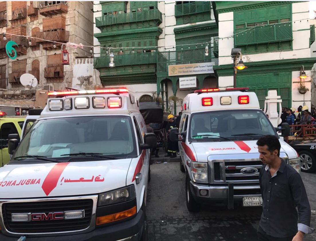 وأضاف تم تقديم الخدمة الإسعافية لجميع الحالات، ونقل أربع حالات أُصيبت باختناق على إثر استنشاق الأدخنة المتصاعدة من الحريق المتصاعد إلى مستشفى الملك عبدالعزيز بجدة، إضافة إلى إسعاف حالتين أخرى بالموقع.