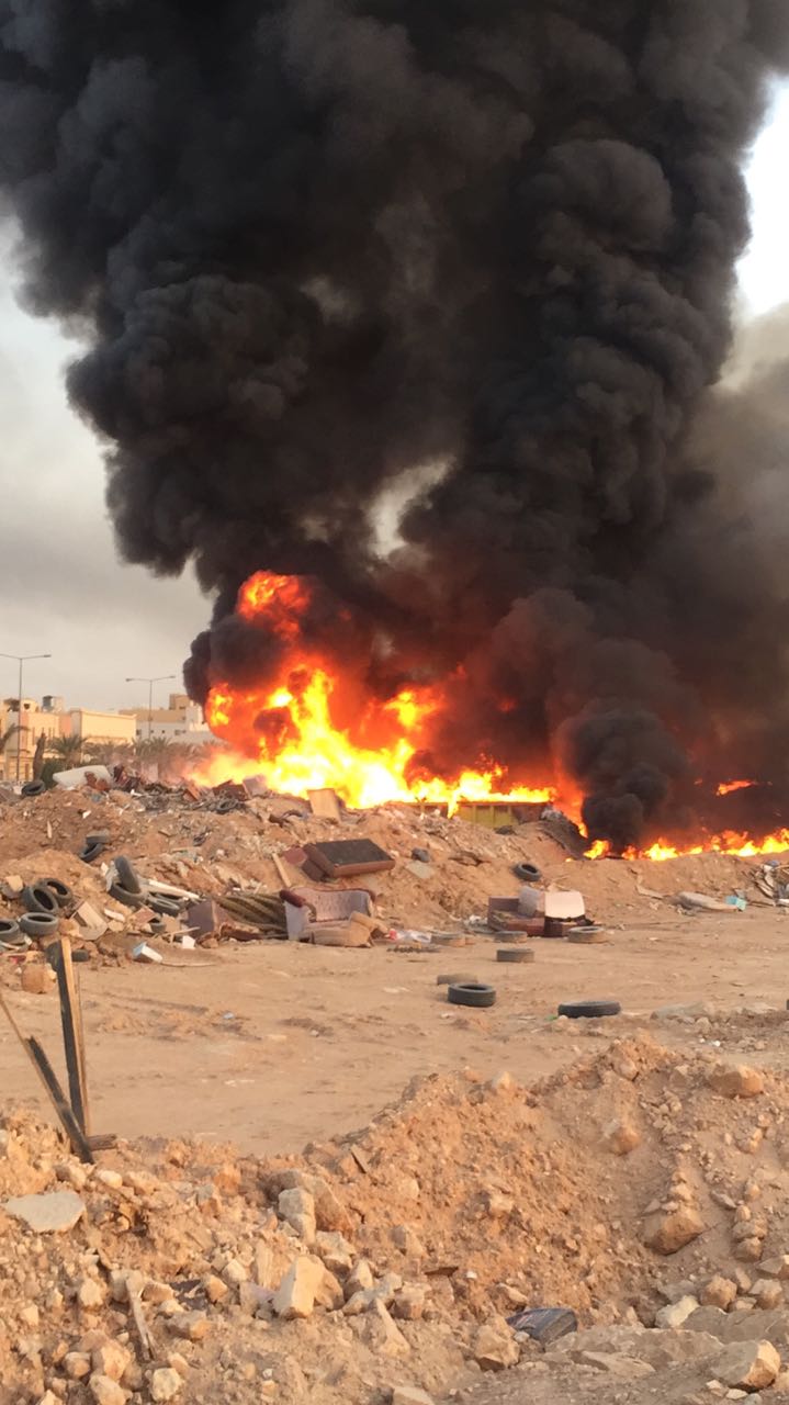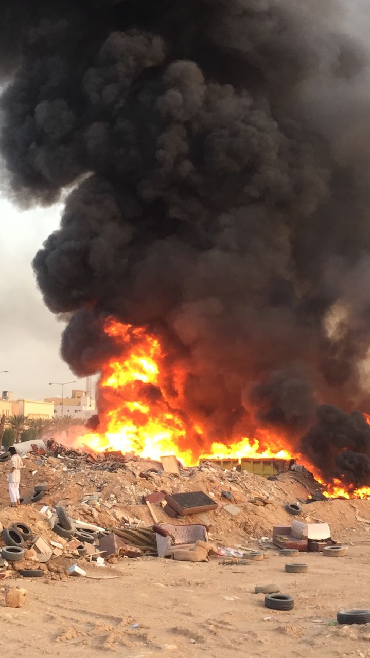 قام عدد من المراهقين بإشعال النار في مكب نفايات يقع بالقرب من شارع سبأ في حي النسيم الشرقي بالرياض حيث تواجدت فرق الدفاع المدني منذ وقت مبكر في محاولة منها لإخماد الحريق والذي شب منذ ساعات الصباح الباكر.