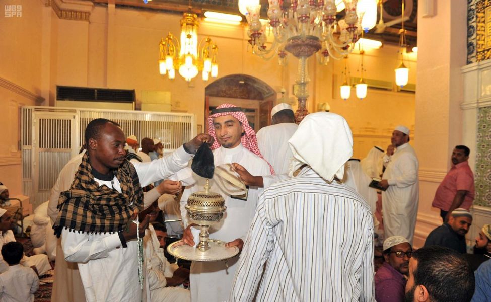 وتتم عملية تبخير المسجد النبوي على فترتين قبل صلاة العشاء وبعد الخمس تسليمات الأولى من صلاة التراويح.