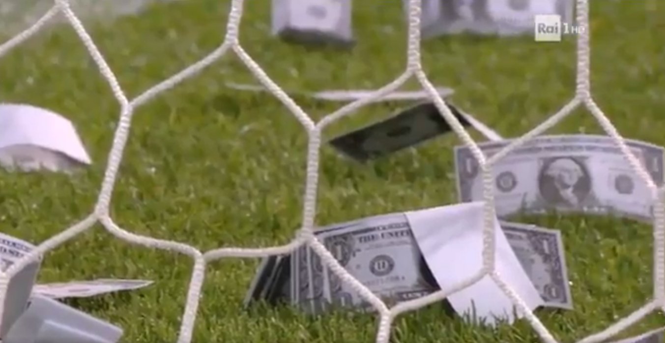 واضطر حكم اللقاء إلى إيقاف المباراة لإخراج هذه الأموال المزيفة من الشباك ثم استكمل اللقاء.