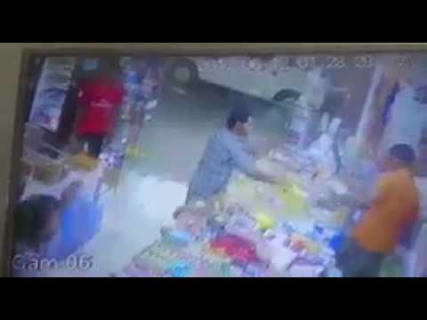 تداول رواد مواقع التواصل الاجتماعي مقطع فيديو يوضح قيام شاب بضرب عامل بقالة بكل ما هو أمامه من مواد غذائية؛ بسبب عدم وجود دخان، بحسب ما ذكره مغردون.