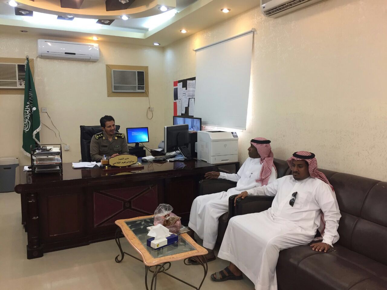 ضم الوفد كل من مؤسس رابطة تبوك الخضراء ورابطة شرورة الخضراء الناشط البيئي طارق الحسين ورئيس رابطة شرورة الخضراء المهندس صالح الصيعري.