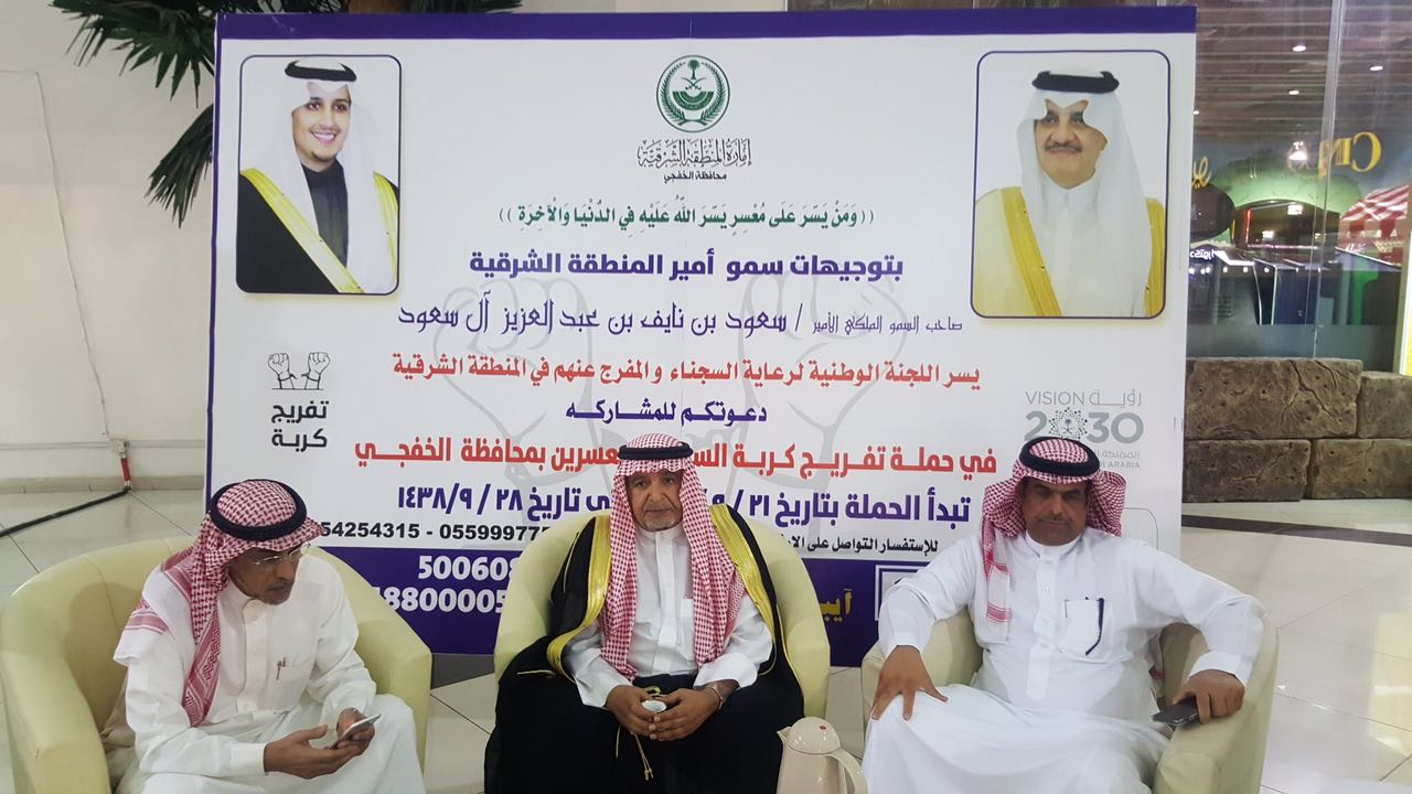 يُذكر أن إجمالي ديون سجناء الدين بمحافظة الخفجي، وصل إلى 6 مليون ريال، لفك كربة 12 سجينًا.