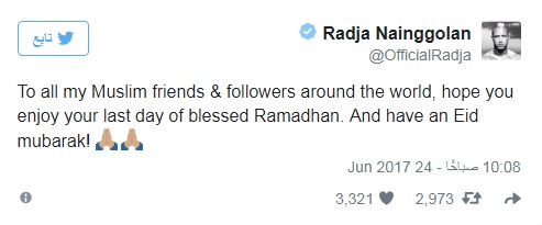 وجه البلجيكي رادجا ناينجولان، نجم روما الإيطالي، رسالة إلى الأمة الإسلامية، بمناسبة حلول عيد الفطر المبارك، وذلك من خلال حسابه الشخصي بموقع التواصل الاجتماعي تويتر.