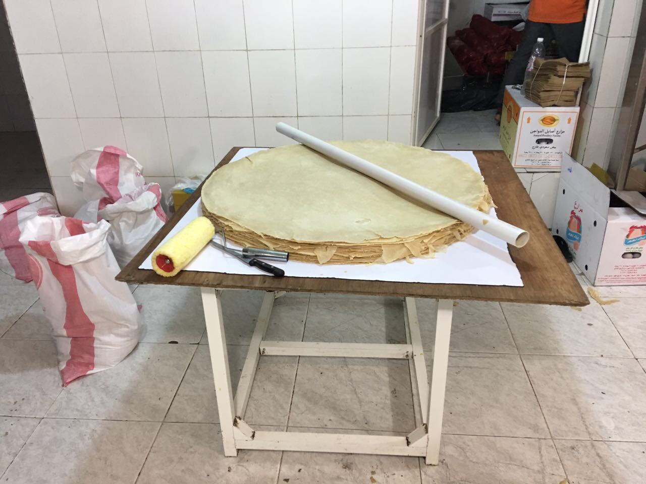 وقامت العمالة بتحضير العجين وفرده بطرق غير صحية، بواسطة “ماسورة”، ودهن العجين بالزيت بفرشة الدهانات “البويا”، في موقع غير مهيّأ صحيًا ومخالف للاشتراطات، وتوزيع هذه الشرائح مجهولة المصدر، وبيعها على المحلات من أبناء جلدتها.