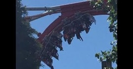 وثق مقطع فيديو لقطات مرعبة لركاب لعبة ملاهِ مقلوبين رأساً على عقب بعد تعطل عربة مليئة بالأشخاص.