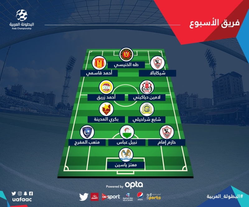 شهد التشكيل المثالي للجولة الأولى بدور المجموعات بالبطولة العربية للأندية 2017، المقامة حالياً في مصر، تواجد لاعبي الهلال والنصر ضمن القائمة الأفضل خلال الأسبوع الأول.