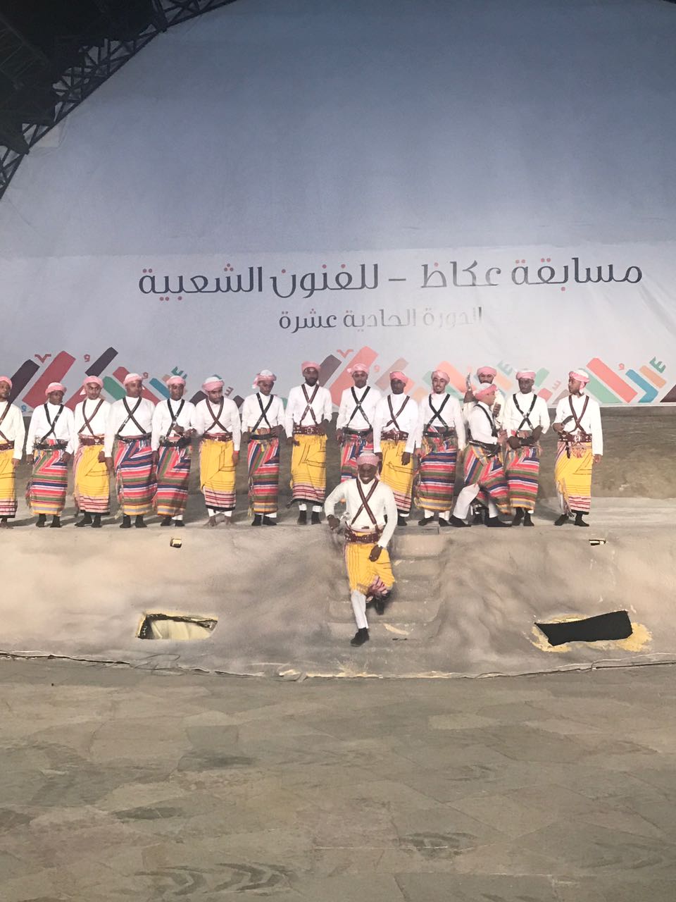 ضمن فعاليات مسابقة الفنون الشعبية بسوق عكاظ في دورته الحادية عشرة، وبحضور جماهيري كثيف، شاركت فرقة جازن مساء أمس في مسابقة الفنون الشعبية للكبار، بتقديم العرضة الجازانية، وسط تفاعل الحضور بهذا اللون الجميل.