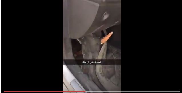 وتداول رواد مواقع التواصل الاجتماعي، مقطع مصور وثّقه صاحب السيارة المتضررة توضح الأعواد الخشبية وقد اخترقت السيارة وظهرت داخلها في الجزء المخصص للسائق، وكادت أن تخترق نصفه السفلي.