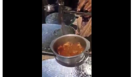 وأظهر مقطع متداول قيام العمال بوضع مرايا كبيرة عاكسة تحت أواني الطهي لتقوم بتجميع حزمة الأشعة أسفل إناء الطهي المعلق على حامل حديدي.