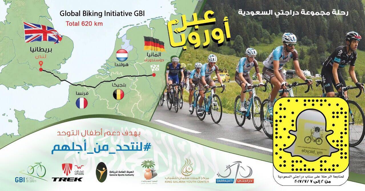 وانطلاقًا من مدينة لندن، بدأ فريق “دراجتي السعودية” المكون من 16 دراجًا، التحدي الذي يجمعه مع 40 فريقًا من مختلف دول العالم، ومن المقرر أن تقطع الفرق المتنافسة مسافة تزيد عن 600 كيلومتر خلال 6 أيام، وتمر بفرنسا وبلجيكا وهولندا، وتنتهي الرحلة في مدينة دوسلدورف بألمانيا.
