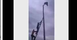 تداول نشطاء موقع التواصل الاجتماعي “فيسبوك”، مساء أمس الثلاثاء، مقطع فيديو لمحاولة إنقاذ رجل من أعلى عمود كهرباء بعد تمسكه بالأسلاك.