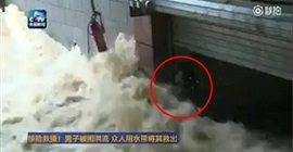 نجح رجل في إنقاذ زميله في العمل بعد أن علق في مياه الفيضان بالصين.