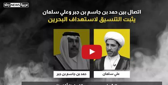وكان التلفزيون البحريني بث قبل قليل اتصالاً هاتفيًا بين الإرهابي علي سلمان وبين رئيس وزراء قطر السابق حمد بن جاسم،يكشف التنسيق بينهما لاستهداف البحرين.