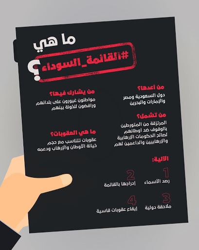 هي قائمة تجمع أسماء كل من خان الوطن، وباع القضية الخليجية والعربية، بدأ بتشكيلها الرباعي الداعي لمكافحة الإرهاب (السعودية والإمارات والبحرين ومصر)، لتشمل المرتزقة، الذين وقفوا ضد أوطانهم، لصالح الحكومات والتنظيمات الإرهابية، والداعمين والممولين لهم.