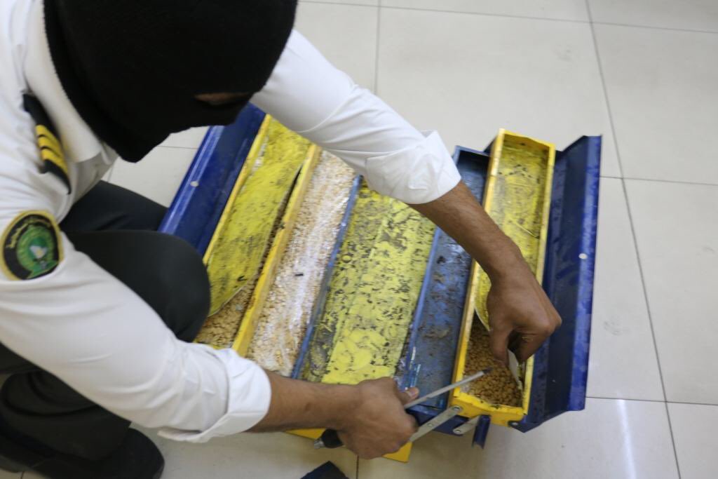 وأوضح إبراهيم العنزي، مدير عام جمرك الحديثة، أنه تم ضبط هذه الكمية من الحبوب من خلال خمس محاولات لتهريبها، حيث قدِمت أولًا للجمرك شاحنة محمّلة ببضاعة متنوعة، وعند خضوعها للإجراءات الجمركية المعتادة ولأجهزة الفحص بالأشعة، اشتبه المراقب الجمركي بوجود أجسام داخل ثلاجة ضمن الأمتعة المحمّلة، وبتفتيشها عُثر على كمية من حبوب “الكبتاجون” بلغ عددها ( 130.000) حبة، كانت مُخبأة داخل صندوق معدني مثبّت داخل الثلاجة، ووضع مادة “الفوم الإسفنجية” لغرض التمويه.