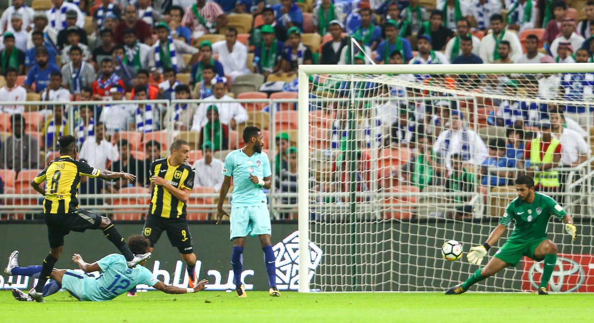 وكان الشوط الأول من مباراة الهلال والاتحاد قد انتهى بالتعادل الإيجابي 1 ـ 1، وأحرز الاتحاد هدف التقدم في الدقيقة 12 عن طريق فهد المولد من تصويبة سكنت شباك الحارس عبدالله المعيوف، لتصبح النتيجة 1 ـ 0 لصالح الاتحاد، ونجح كارلوس إدواردو في تسجيل هدف التعادل في الدقيقة 47 بعد استغلاله لكرة ساقطة داخل منطقة الجزاء سددها بيمناه قوية في شباك الاتحاد، لينتهي الشوط الأول بالتعادل الإيجابي 1 ـ 1.