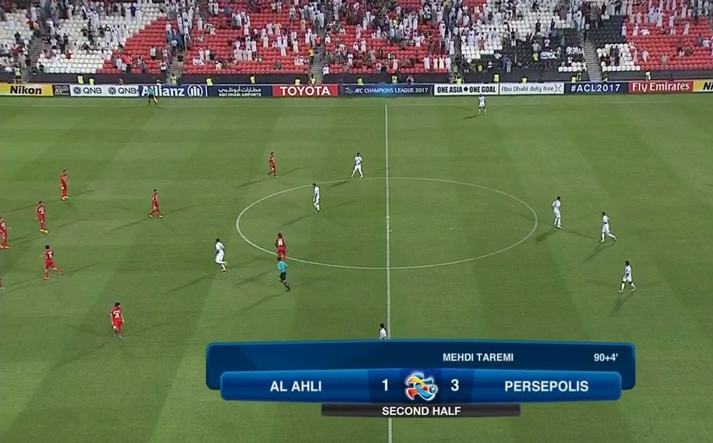 وفي الشوط الثاني استطاع النادي الأهلي إحراز هدف التعادل عن طريق صالح العمري في الدقيقة 50، لكن في الدقيقة 80 حصل بيروزي على ركلة جزاء سجلها اللاعب مينشا، وتعرض مدافع الأهلي معتز هوساوي إلى الطرد، وفي الوقت بدل الضائع أضاف بيروزي الهدف الثالث من ركلة جزاء أحرزها مهدي طارمي، لينتهي اللقاء بهذه النتيجة.
