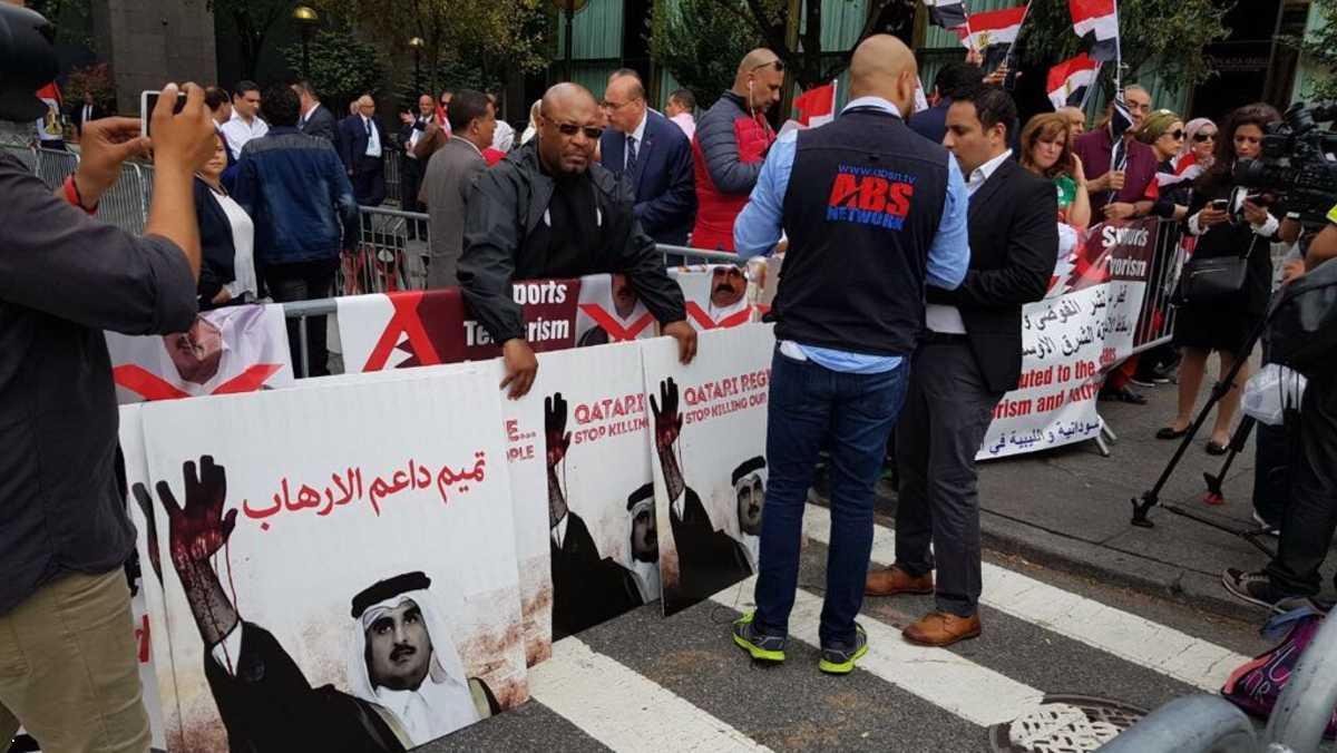 شارك العشرات، مساء اليوم الثلاثاء، في تظاهرات أمام مقر الأمم المتحدة في نيويورك، للتنديد بدعم الدوحة للإرهاب، وذلك بالتزامن مع انعقاد اجتماعات الجمعية العامة للأمم المتحدة في دورتها الـ72.