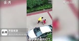 ظهر رجل في بداية الفيديو يرتدي قميصاً أصفر يدفع آخر يرتدي قميصاً أحمر ويحاول إجباره على التراجع، ما أدى إلى سقوطه على الأرض، لكن سرعان ما وقف الأخير على قدميه، وحوّل موقف السيارات إلى ساحة قتال، حيث صبّ غضبه على الرجل وركله بقوة ما طرحه أرضاً مصاباً بتشنجات في الرجل.