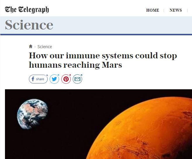 ووفقًا لصحيفة “التليغراف” البريطانية، فإن بعض الباحثين في مجال الفيزياء المرتبطة بالفلك، أكدوا استحالة عيش الإنسان في الفضاء رغم ما يتوافر له من قدرات تقنية خارقة في الوقت الحالي، مشيرين إلى الأضرار الجسمانية التي قد تلحق بجهازه المناعي.