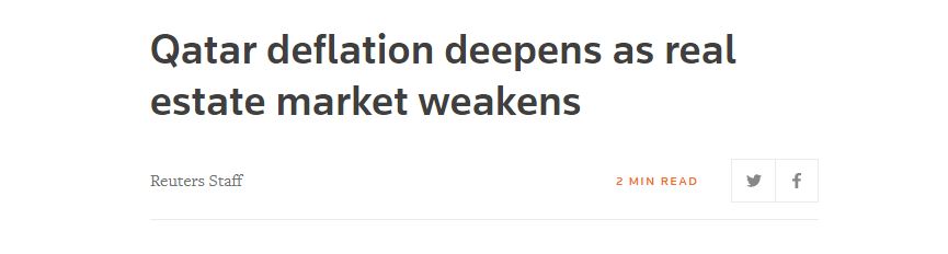 وكانت أسعار المساكن في اتجاه هبوطي قبل يونيو عندما قطعت السعودية والإمارات العربية المتحدة والبحرين ومصر العلاقات الدبلوماسية والنقل مع قطر متهمة إياها بدعم الإرهاب، غير أن العقوبات أسهمت في انزلاق الأسعار بشكل رئيسي، وهو الأمر الذي نتج عن انهيار ثقة المستثمرين وخنق الطلب بين مواطني دول الخليج الأخرى، وتشديد السيولة في النظام المصرفي.