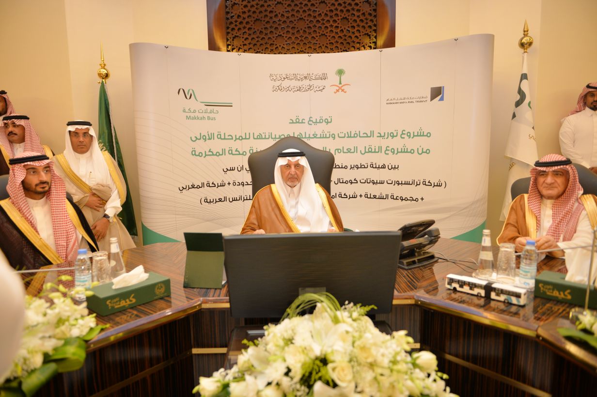 وقال الفيصل خلال مراسم توقيع عقد توريد وتشغيل وصيانة مشروع حافلات مكة المكرمة بمقر الإمارة بجدة اليوم، بحضور نائب أمير المنطقة صاحب السمو الملكي الأمير عبدالله بن بندر : ” نوقع اليوم هذه الاتفاقية التي هي بمثابة الانطلاقة لجميع مشاريع النقل العام بمنطقة مكة المكرمة، وبهذه المناسبة أرفع أسمى آيات الشكر والعرفان لسيدي خادم الحرمين الشريفين الملك سلمان بن عبدالعزيز يحفظه الله ، كذلك الشكر لسمو ولي عهده الأمين على الرعاية الكريمة التي تحظى بها المنطقة ، ولا أدل على ذلك إلا المشاريع التي دشنها وباركها خادم الحرمين الشريفين مؤخرًا ، متمثلة في مشروعي الفيصلية والطائف الجديد “.