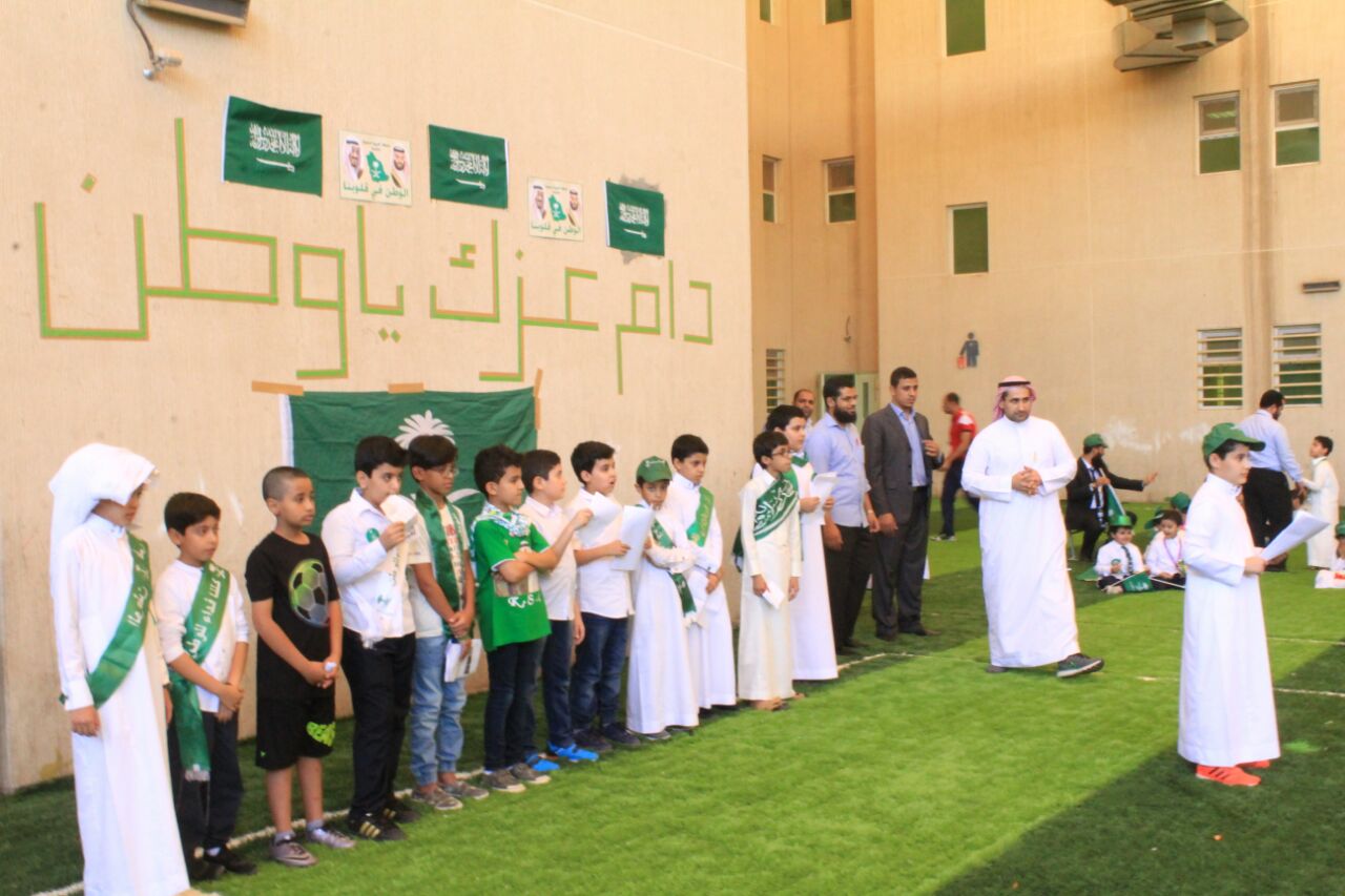 واشتملت الاحتفالية على كلمات وقصائد ومشاركات وطنية للطلاب، كما تم عمل مسابقات ثقافية للتعريف باليوم الوطني وسط تزين الطلاب ومبنى المدرسة بالإعلام الخضراء والعبارات الوطنية.