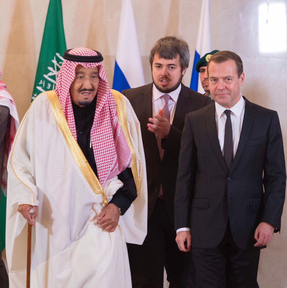 مراسم استقبال رسمية أجريت اليوم لخادم الحرمين الشريفين، الملك سلمان بن عبدالعزيز، في مقر مجلس الوزراء الروسي في العاصمة موسكو؛ حيث عقد جلسة مباحثات مشتركة مع رئيس الوزراء ديميتري ميدفيديف.