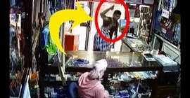أظهر مقطع الفيديو لحظة اقتحام شاب يحمل سيفاً لمحل، حيث راح يهدد البائعتين بطريقة مروعة ما أثار فزعهما وخوفهما حيث قامت إحداهما بإعطائه نقوداً، وراح يتشاجر مع أحد الزبائن داخل المكان ثم فر هارباً من المكان.