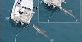 رصدت طائرة بدون طيار، لقطات صادمة لقرش أبيض ضخم يحاول تدمير قارب صيد قبالة الساحل الجنوبي الأسترالي.