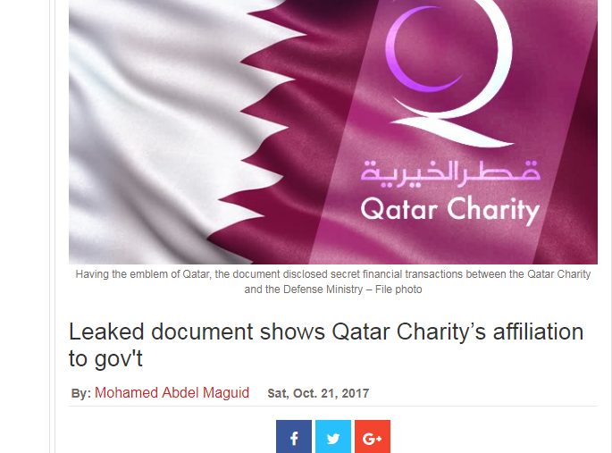 وبيّنت المجلة المصرية، الناطقة بالإنجليزية، أنَّ “الوثيقة أثارت جدلًا حول مصداقية واستقلالية المنظمة القطرية غير الحكومية المدرجة على قائمة تضمنت 12 كيانًا و59 شخصًا، تم وضعها من طرف الرباعي الداعي لمكافحة الإرهاب، والتي تتصل بقطر أو تتلقى دعمًا منها، والتي كانت قد أُعلن عنها في حزيران/يونيو الماضي”.