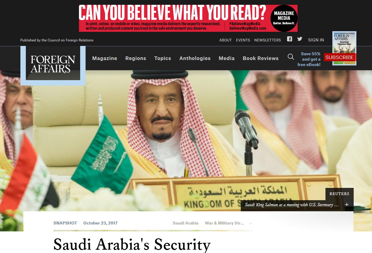 أكدت مجلة “فورين أفيرز” أن المملكة تحاول منذ عام 2015 تعزيز قوتها الإقليمية، وذلك بإنشاء ائتلافات وتحالفات غير رسمية متعددة الأطراف.