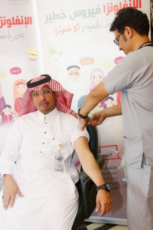 دشن محافظ محايل محمد بن سعود أبو نقطة المتحمي في مكتبه اليوم حملة التطعيم ضد الإنفلونزا الموسمية بحضور مدير المراكز الصحية المشرف على مستشفى محايل العام محمد بن زيد عسيري وعدد من الأطباء ومنسوبي المحافظة.