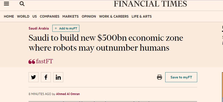 ولفتت الصحيفة بشكل رئيسي إلى الاعتماد التقني الرئيسي لتلك المنطقة الاستثمارية، حيث من المقرر أن تفوق الروبوتات أعداد السكان من البشر في تلك المناطق، وهو ما يأتي على غرار العديد من المدن التقنية في العالم، والتي تعتمد على الميكنة بشكل رئيسي.