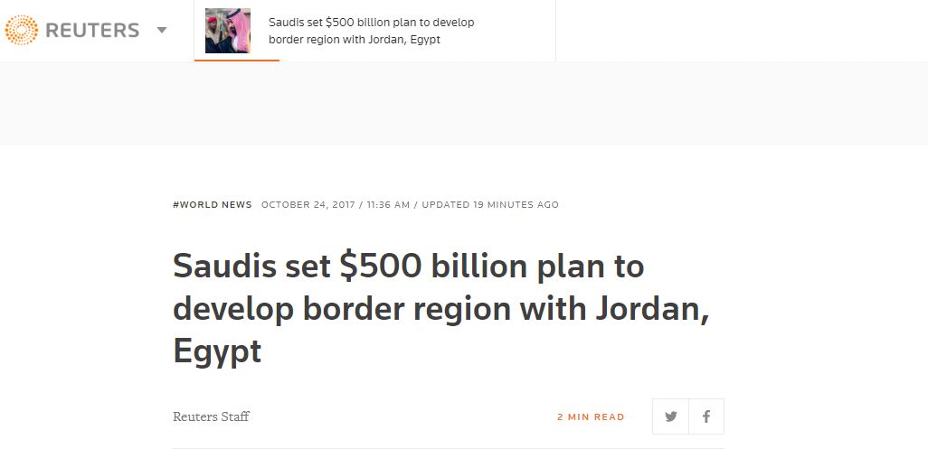 وتنظر وكالة أنباء “رويترز” الدولية، إلى مشروع “نيوم” والذي يشمل خطة استثمارية بقيمة 500 مليار دولار، على أنه أكبر مشروع ضمن سلسلة من الجهود الرامية إلى تحرير المملكة من اعتمادها الرئيسي على الصادرات النفطية، والتي تأتي ضمن رؤية 2030 التي كشف عنها صاحب السمو ولي العهد منذ 2016.