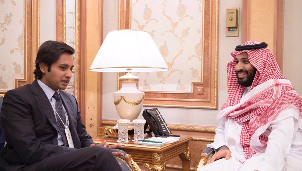 التقى صاحب السمو الملكي الأمير محمد بن سلمان بن عبدالعزيز ولي العهد نائب رئيس مجلس الوزراء رئيس مجلس الشؤون الاقتصادية والتنمية، رئيس مجلس إدارة صندوق الاستثمارات العامة، على هامش مبادرة مستقبل الاستثمار، كلاً من : رئيس شركة فيرجن السيد ريتشارد برانسو والرئيس التنفيذي لبنك الصين العالمي السيدة تونغ لي والرئيس التنفيذي لشركة ارسيلور ميتال السيد اديتال ميتال ، كلا على حده.