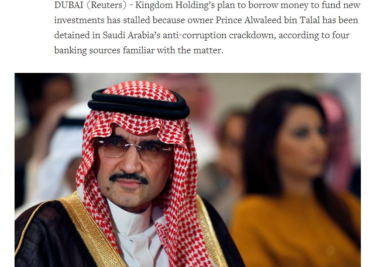 تسلط وسائل الإعلام الدولية الضوءَ على مرحلة ما بعد حملة الفساد التي شنها ولي العهد الأمير محمد بن سلمان على رموز الفساد والمسؤولين والأمراء الذين تم توقيفهم على ذمة العشرات من القضايا التي تتعلق بالتلاعب المالي والفساد الإداري، حيث زعم مصدر لوكالة أنباء “رويترز” أن هناك مشكلةً تواجه شركة المملكة القابضة، المملوكة للأمير الوليد بن طلال، والذي ورد اسمه ضمن مجموعة الشخصيات الذين تم توقيفهم مؤخرًا.