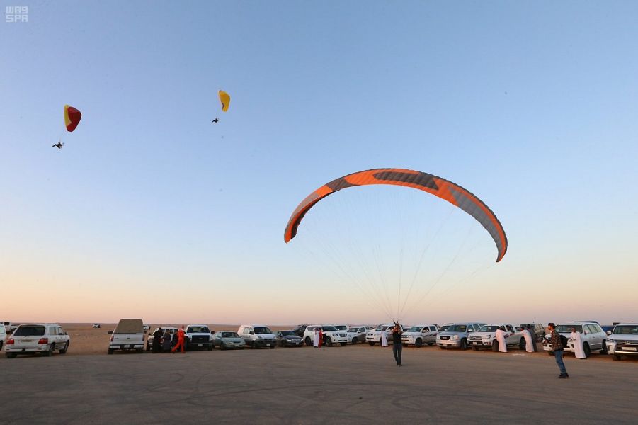 وبدأ الملتقى بعروض الطيران الشراعي على بحيرة دومة الجندل، بمشاركة عدد من الطيارين قدموا عروضاً مختلفة للزوار، حيث يشارك في العروض طيارات “جايركبتر، وبرموتر، وترايك”.