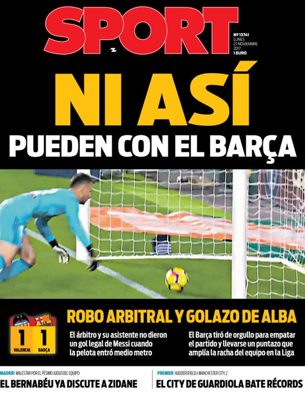 وشهدت مباراة برشلونة فضيحةً من العيار الثقيل، بعدما تغاضى حكم المباراة عن احتساب هدف صحيح لصالح برشلونة؛ بداعي عدم تجاوز الكرة خط مرمى فريق فالنسيا.