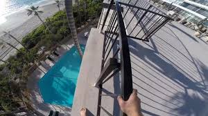 وظهر المغامر الشجاع في مقطع فيديو قصير وهو يستعد للقذف بنفسه من الشرفة المرتفعة، قبل أن ينفذ قفزة رشيقة وسريعة ويحط بنجاح على حافة اللوحة الإعلانية.