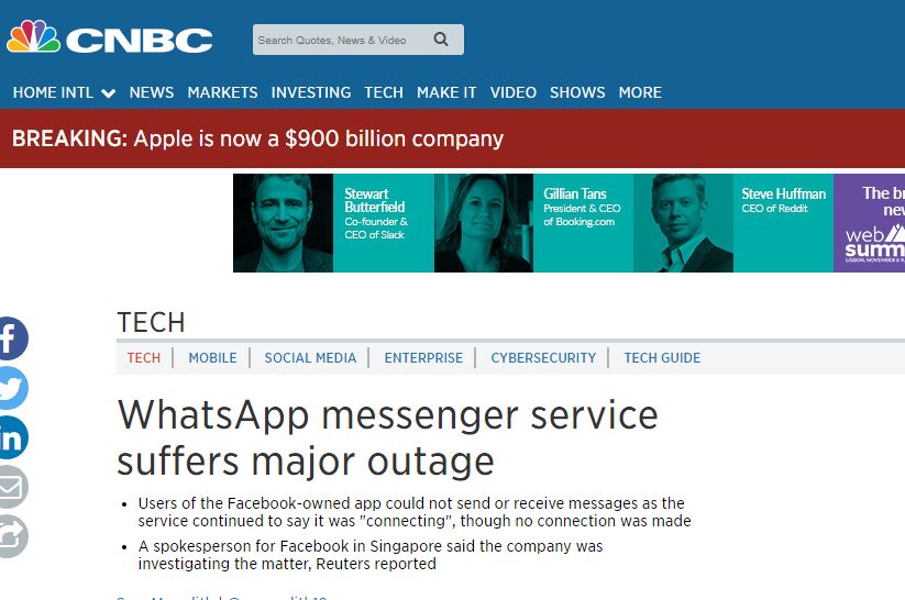 وبحسب شبكة “CNBC” الأميركية، فإن واتساب خرجت بعد أكثر من ساعة لتعلن أن الخدمة ستعود بشكل طبيعي قريبًا، مشيرة إلى أنها تتحرى الأسباب الفنية التي كانت وراء ذلك العطل خلال الساعات الماضية.