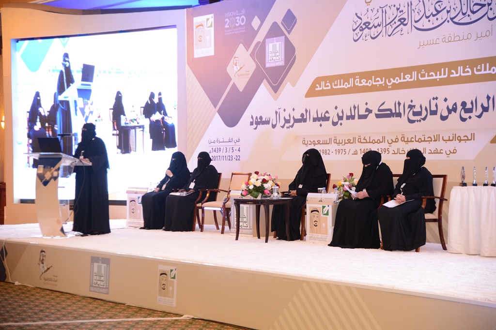 شارك 6 باحثات في جلسات اللقاء العلمي الرابع من تاريخ الملك خالد بن عبدالعزيز، بعنوان “الجوانب الاجتماعية في المملكة العربية السعودية في عهد الملك خالد بن عبدالعزيز آل سعود”؛ وذلك في فعاليات اليوم الأخير للقاء الذي ينظمه كرسي الملك خالد بجامعة الملك خالد، بفندق قصر أبها، خلال الفترة من 4 إلى 5 من الشهر الجاري.